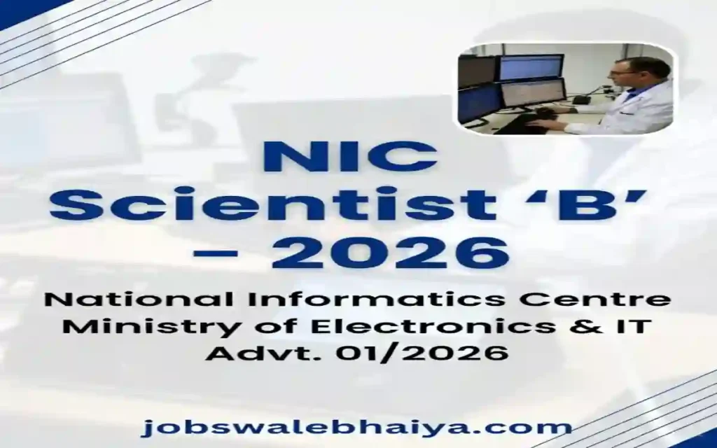 राष्ट्रीय सूचना विज्ञान केंद्र (NIC) ने वर्ष 2026 के लिए वैज्ञानिक ‘B’ के पदों पर बंपर भर्ती की घोषणा की है! यह उन सभी इंजीनियरिंग और विज्ञान स्नातकों के लिए एक शानदार अवसर है जो भारत सरकार के इलेक्ट्रॉनिक्स एवं सूचना प्रौद्योगिकी मंत्रालय (MeitY) के तहत एक प्रतिष्ठित करियर बनाना चाहते हैं। NIC Scientist ‘B’ Recruitment 2026 के माध्यम से, ग्रुप ‘A’ (राजपत्रित) स्तर पर कुल 243 रिक्तियों को भरने का लक्ष्य रखा गया है, जिसमें आकर्षक वेतनमान (Level-10) प्रदान किया जाएगा।