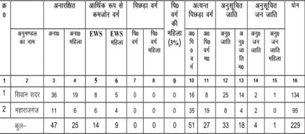 सिवान जन वितरण प्रणाली दुकान अनुज्ञप्ति के लिए कुल 229 रिक्तियां हैं, जिसका विस्तृत विवरण नीचे दी गई तालिका में दिया गया है: